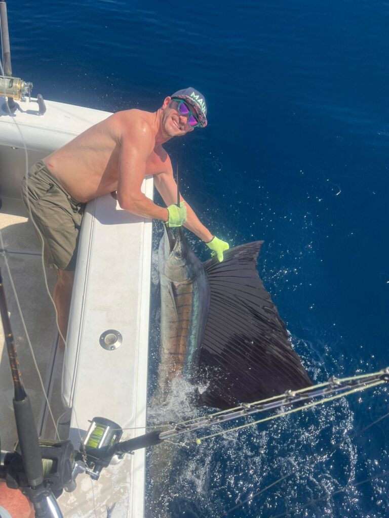 Catch: 2 sailfish, 1 wahoo, 1 red snapper