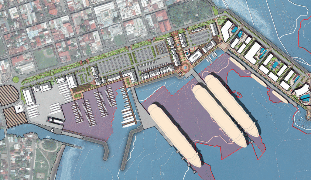 According to the prospectus, the marina will be part of a larger 27-hectare waterfront development that includes a cruise terminal, commercial areas, restaurants, hotels, and public spaces integrated with the city of Limon.