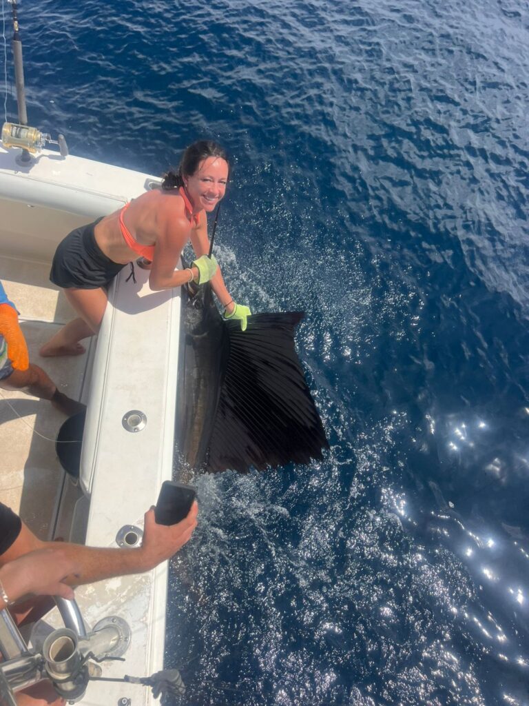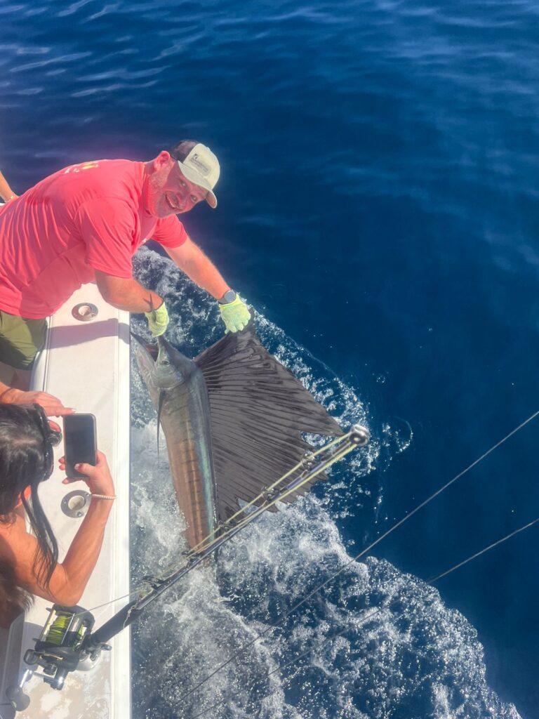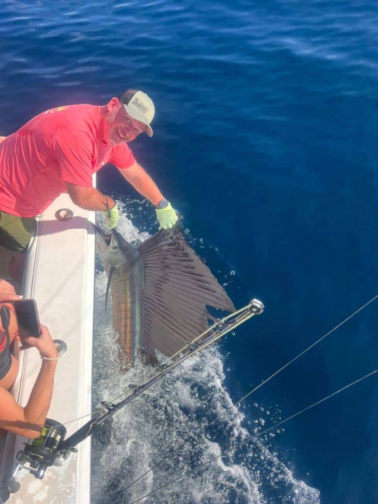 Catch: 4 sailfish, 1 tuna, 2 mahi mahi