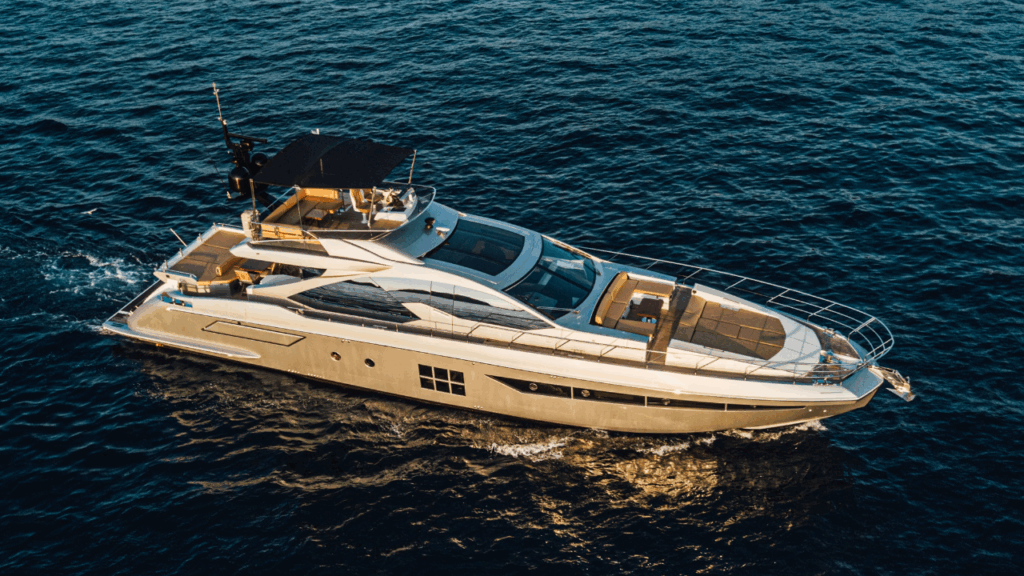 Moreover, it has a swim platform, deck shower, Jacuzzi, and huge sun beds on the deck, a barbecue grill and outdoor dining seats. You will never desire to go back to land again! The yacht accommodates up to eight guests in four suites with their own baths and four crew members, which is ideal to spend the day in glamour or to charter a boat on a special occasion.